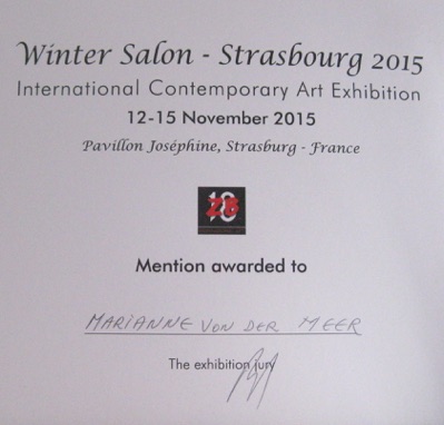 Op de International Contemporary Art Exhibition 2015 in november in Strasbourg, Frankrijk heb ik van de Franse Jury een Speciale Onderscheiding ontvangen voor mijn werk.